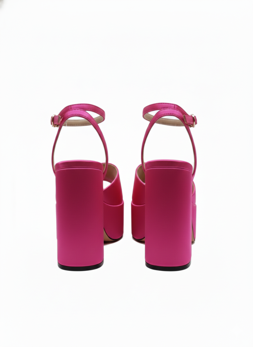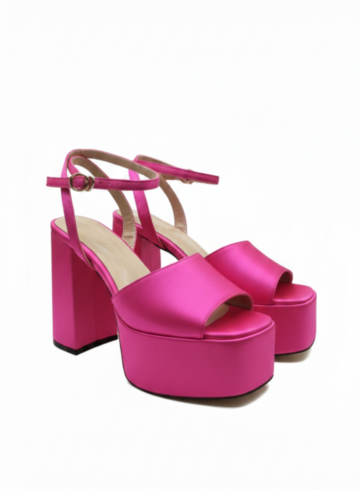 Make a bold statement in our pink satin platform heels this season and beyond. FRAN features a sexy ankle strap + 5-inch platform heel, 2-inch platform.