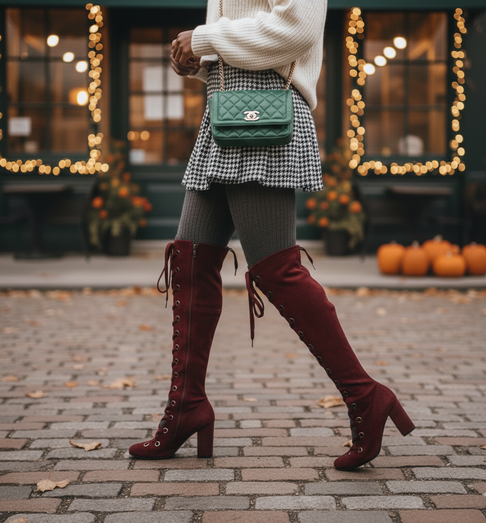 MARY features an mid calf boot with stacked block heel and lace up vamp and closure. Almond toe