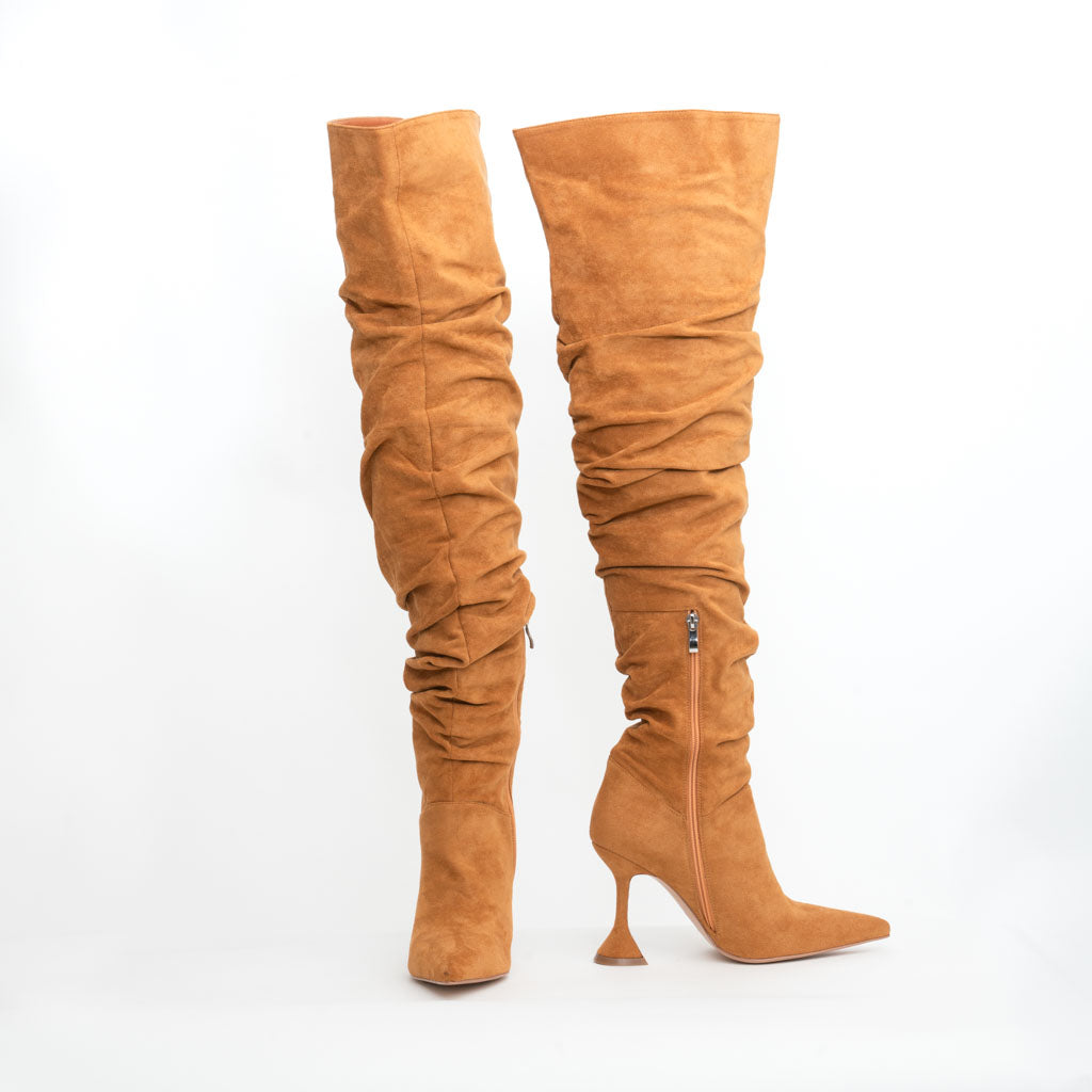It can't get more flattering and comfortable than the ultra soft faux suede MINA boot. Designed with a sleek pointed toe, unique heel and slouchy shaft-- an on trend staple! 3" heel height
